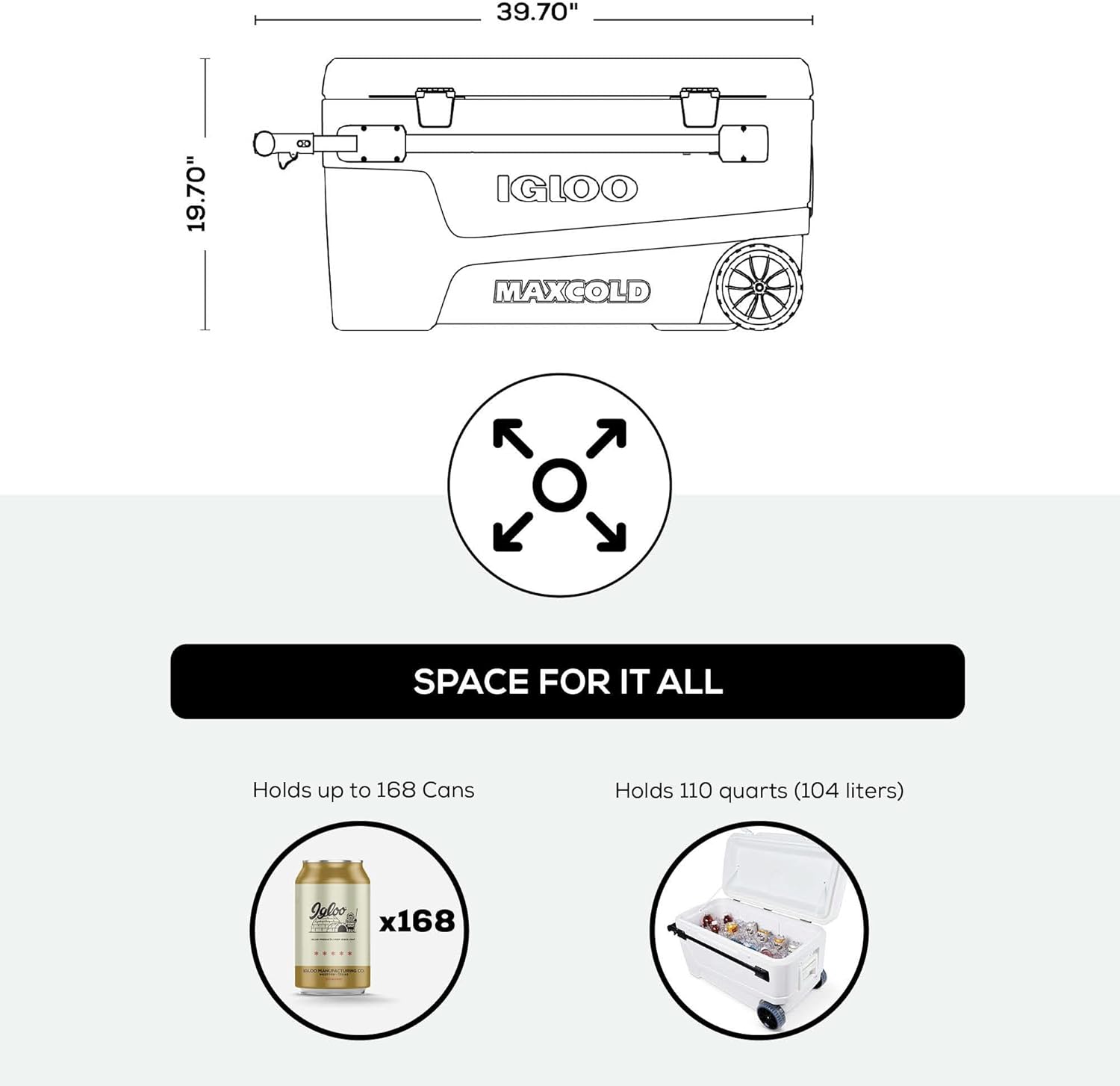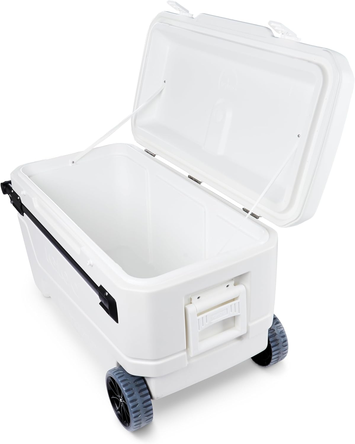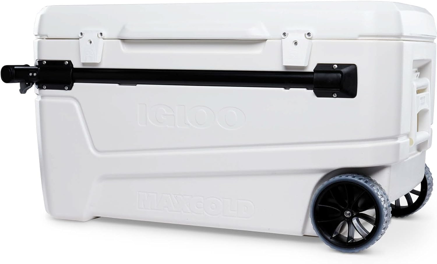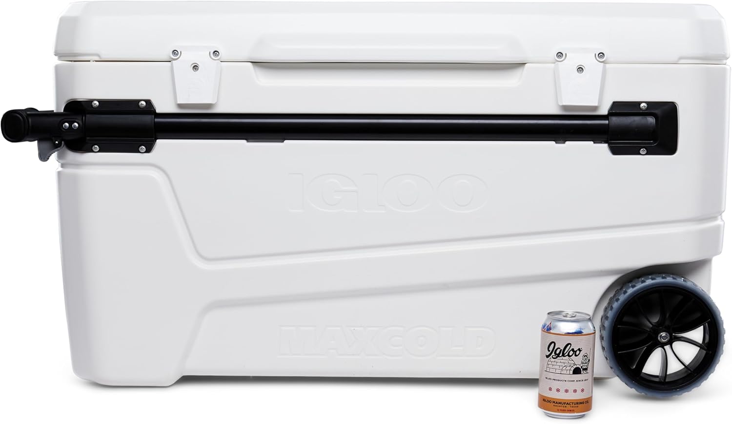 The Igloo 110qt Glide Cooler is the perfect solution for all your outdoor cooling needs. With a massive 110-quart capacity, this cooler can hold up to 168 cans, making it ideal for parties, camping trips, tailgating, and more. The unique horizontal slide-and-lock telescoping handle and oversized sport rally wheels make it easy to transport even when fully loaded.