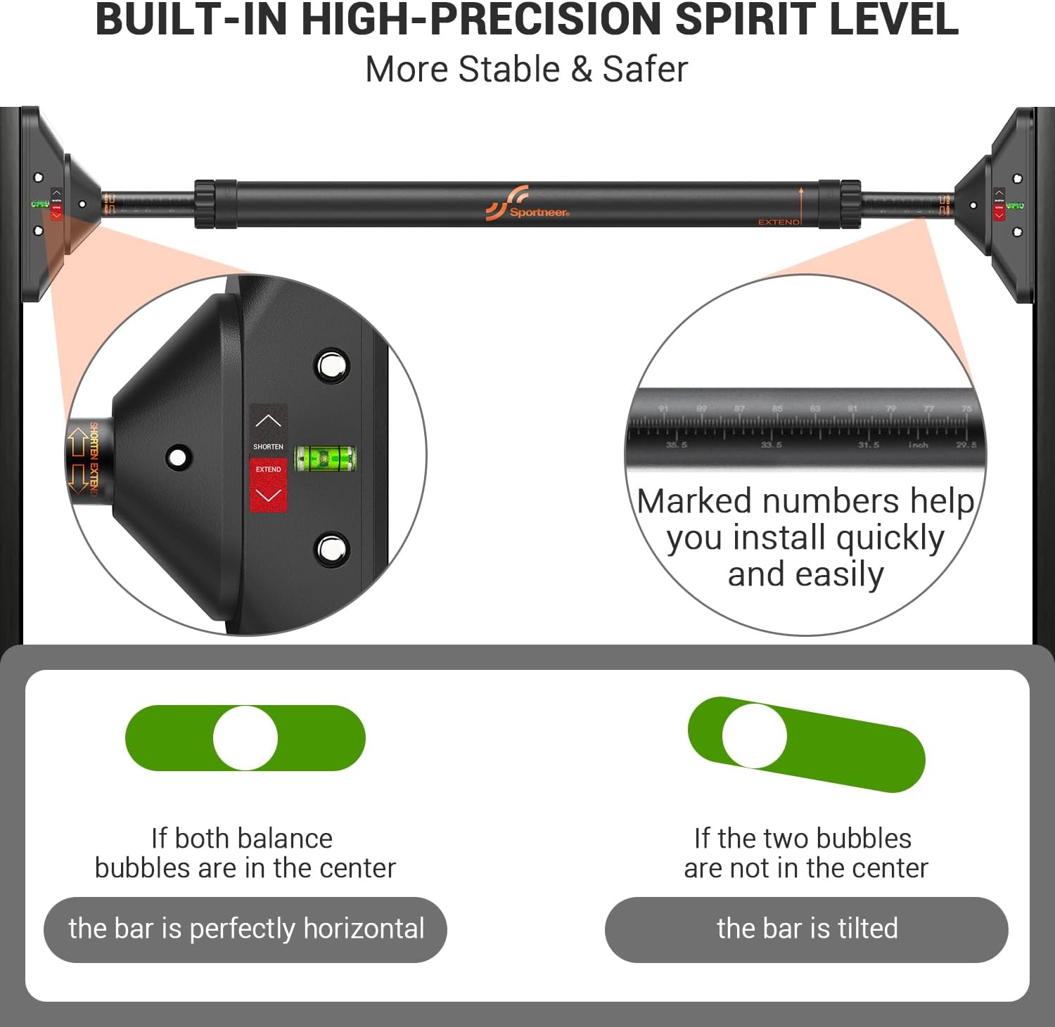 The Sportneer Pull Up Bar is the ultimate tool for strength training at home. This chin up bar features an innovative design that allows for easy installation without the need for screws, making it perfect for doorways. With an adjustable width of 29.5”-37” and a secure locking mechanism, this pull-up bar can accommodate a variety of door frames and provide a stable and secure grip for your workout.