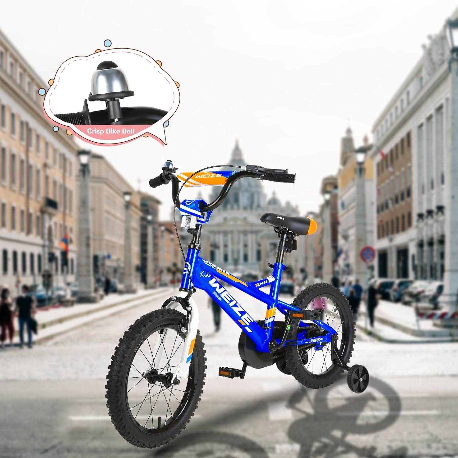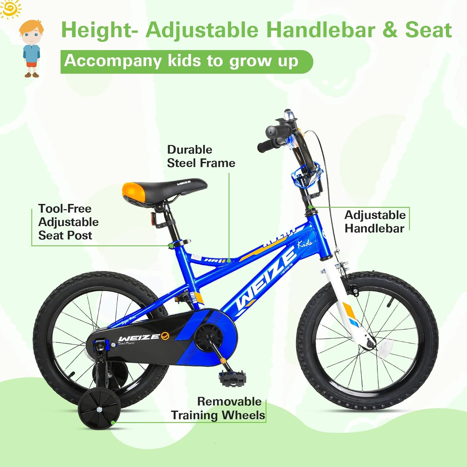 Introducing the WEIZE Kids Bike, the perfect bicycle for children ages 4-12 years old. With 16 or 20-inch wheel options and a rider height range of 38-60 inches, this bike is designed to grow with your child.